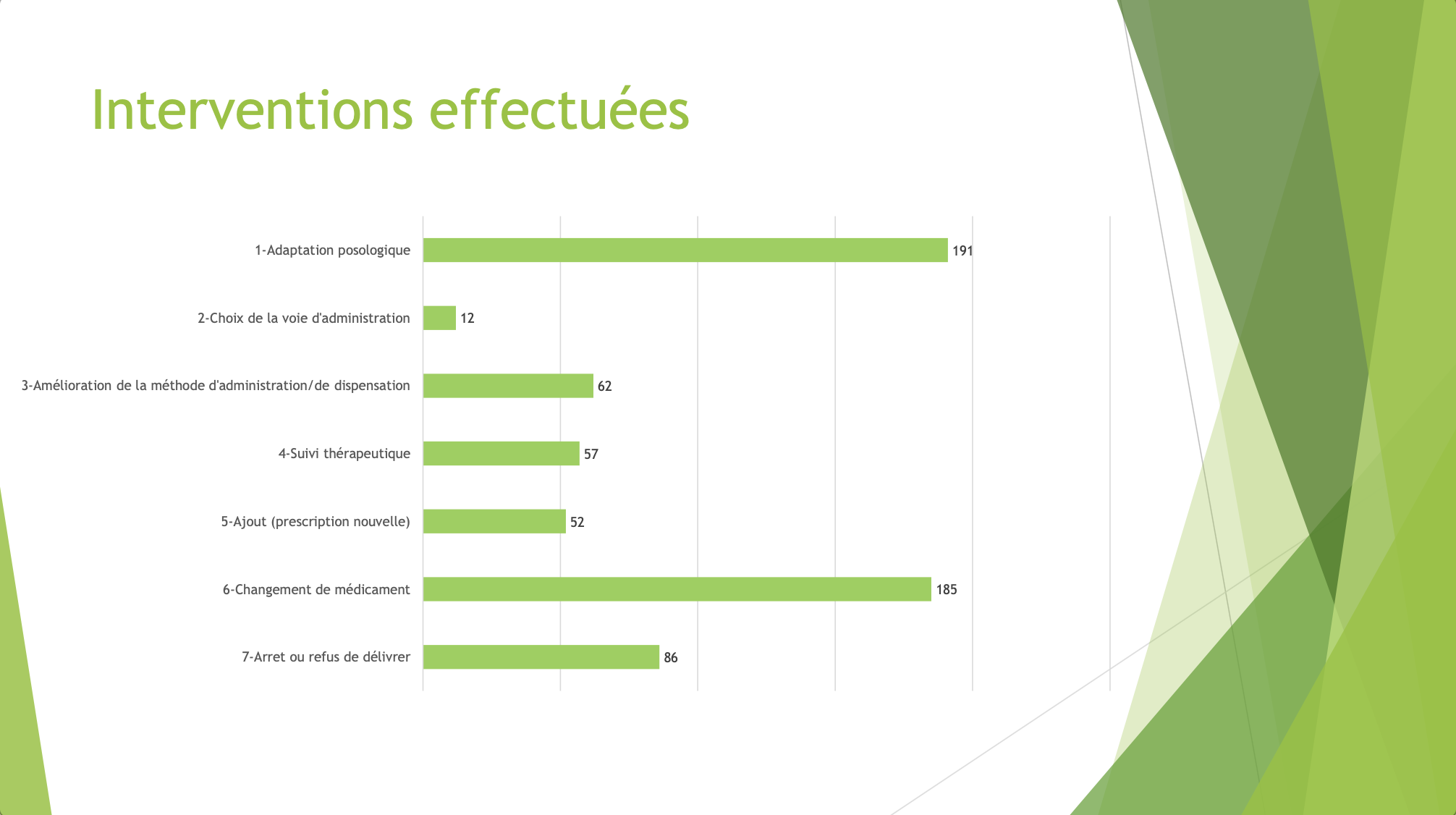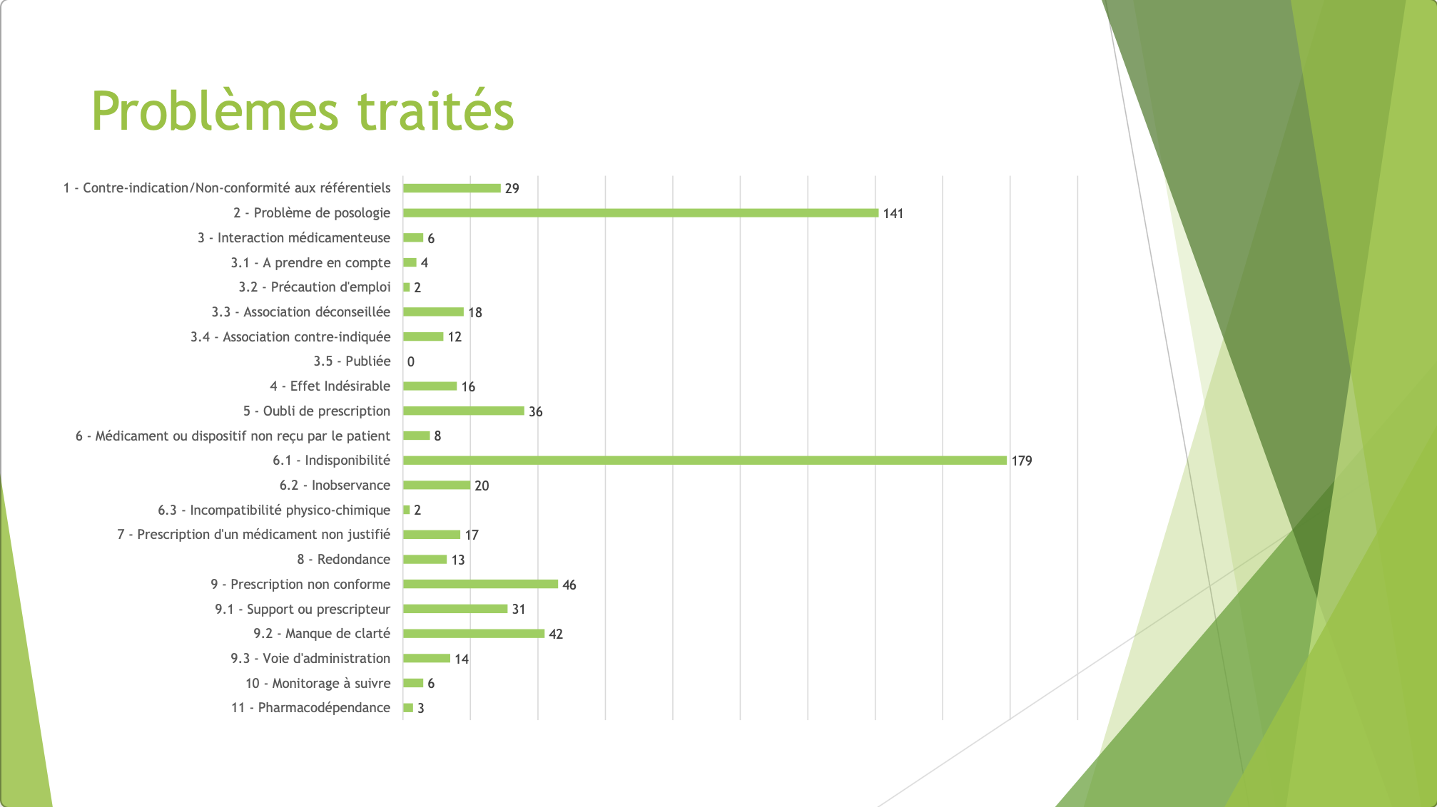 Durant cette période, les pharmaciens de la région PACA ont contribué à l’opération ACT-IP en effectuant diverses interventions visant à améliorer la prise en charge des patients. Vous trouverez ci-dessous les principaux résultats de cette opération, incluant les dépôts effectués, les problématiques rencontrées, les interventions réalisées ainsi que leurs résultats.
