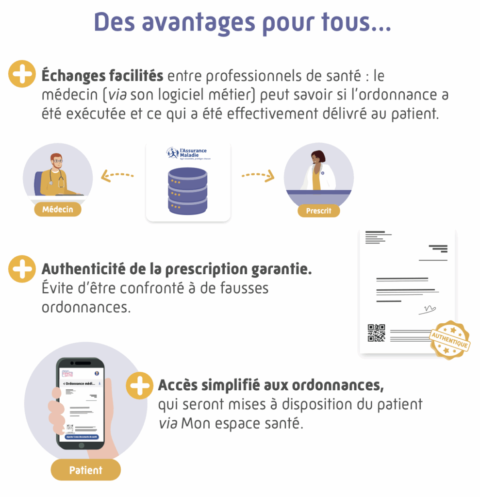 Pour les patients, elle représente un gain de praticité : l’ordonnance est toujours disponible et accessible depuis Mon Espace Santé. Pour les pharmaciens, elle offre une meilleure traçabilité et fiabilité des prescriptions, tout en s’intégrant aux outils numériques de l’officine.