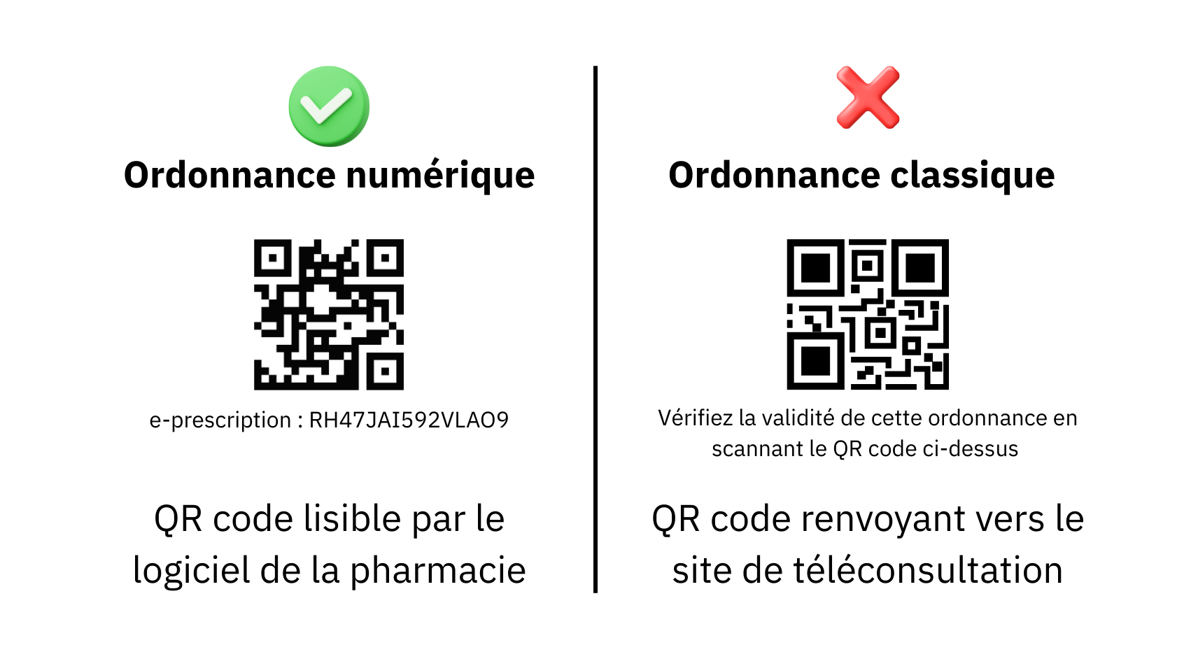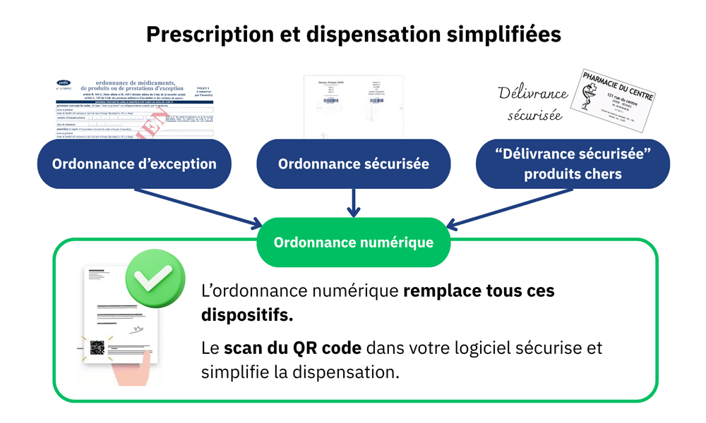 Attention : Certaines plateformes de téléconsultation utilisent un QR code sur l’ordonnance permettant de vérifier son authenticité, ou déclarer une dispensation. Il ne s’agit pas d’une ordonnance numérique. Seules les ordonnances comportant un QR code lisible par votre logiciel métier sont des ordonnances numériques.