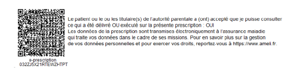 À savoir : Le patient peut décider de ne pas donner accès à son médecin aux dispensations liées à son ordonnance numérique. Le premier paragraphe du texte qui accompagne le QR code se termine dans ce cas par “NON”.