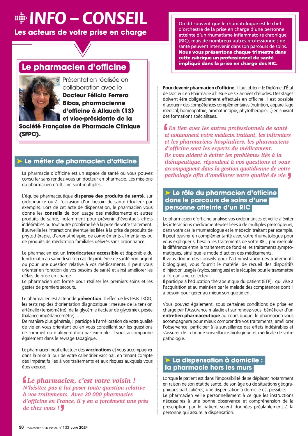 Interview avec notre président, Felicia Berrera Bibas : Le rôle du pharmacien d’officine dans la prise en charge des rhumatismes inflammatoires chroniques.