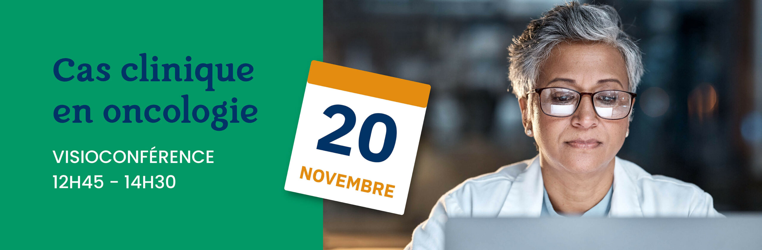 Nous vous donnons rendez-vous le mercredi 20 novembre de 12h45 à 14h30 pour une réunion en ligne « cas clinique en oncologie ».