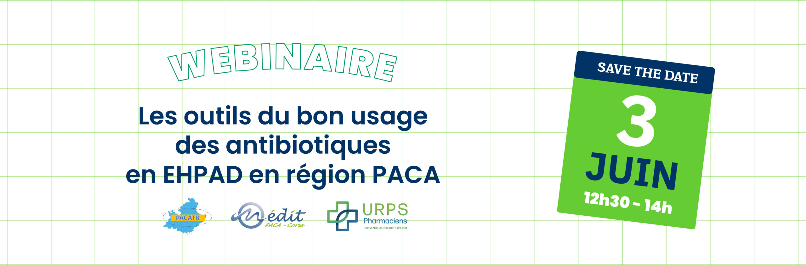 En EHPAD, la fragilité des résidents et la fréquence des prescriptions rendent indispensable une réflexion collective sur l’usage des antibiotiques. Pour accompagner cette réflexion, le CRATB PACA, l’OMEDIT PACA Corse et l’URPS Pharmaciens PACA organisent un webinaire autour du bon usage des antibiotiques en EHPAD.